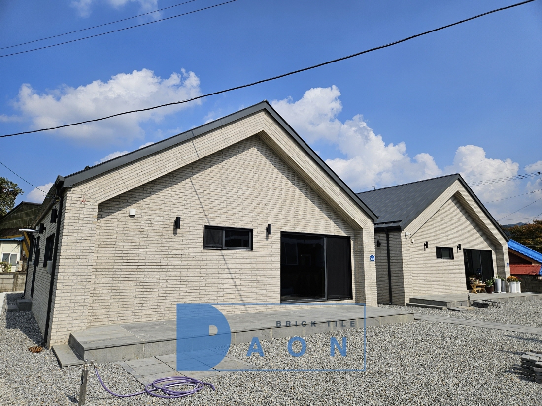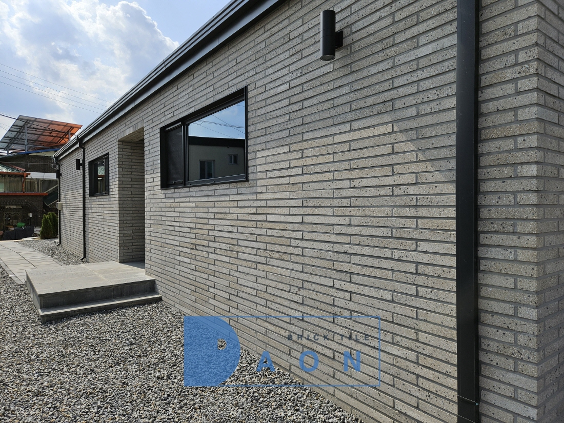 충남 공주시 유구읍 단독주택 외장마감재로 시공된 사례입니다 시공 제품 : 오석옐로우50 (500*50*20T / 1m2 = 28장) 블랙, 화이트, 레드, 옐로우, 그레이 총 5종류 색상의 테라조 모노롱타일 시리즈 제품으로 와이드하고 모던한 분위기 연출에 있어 탁월한 제품입니다. *코너타일*생산됩니다.