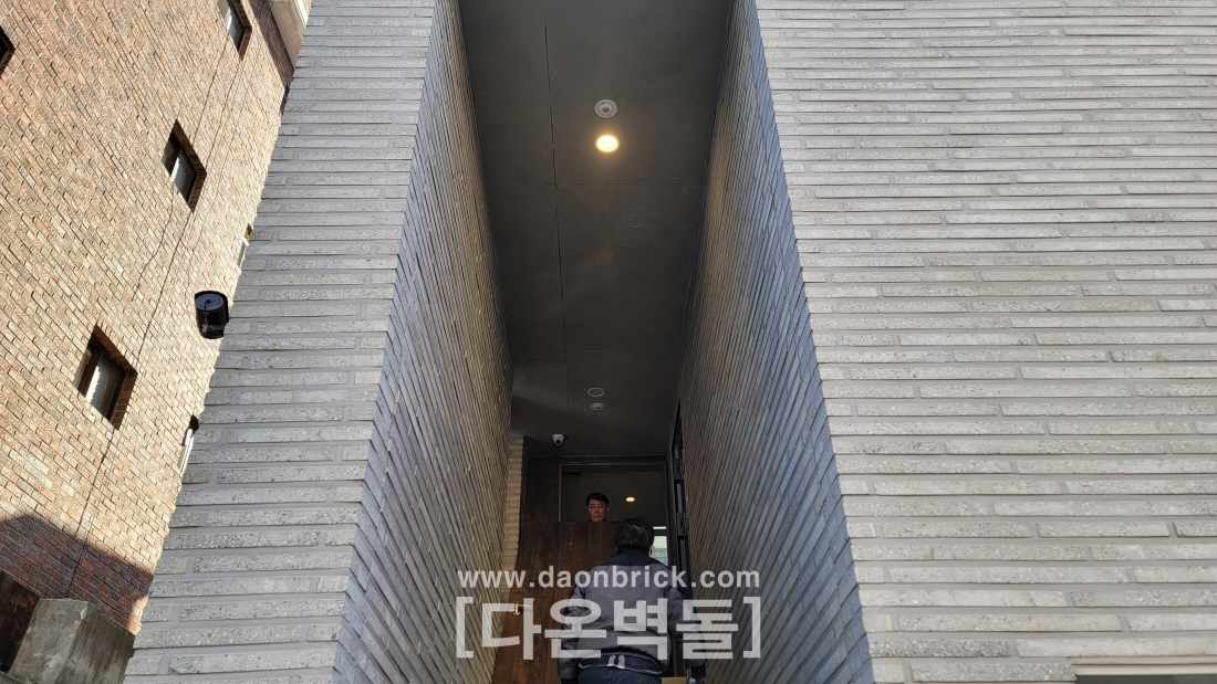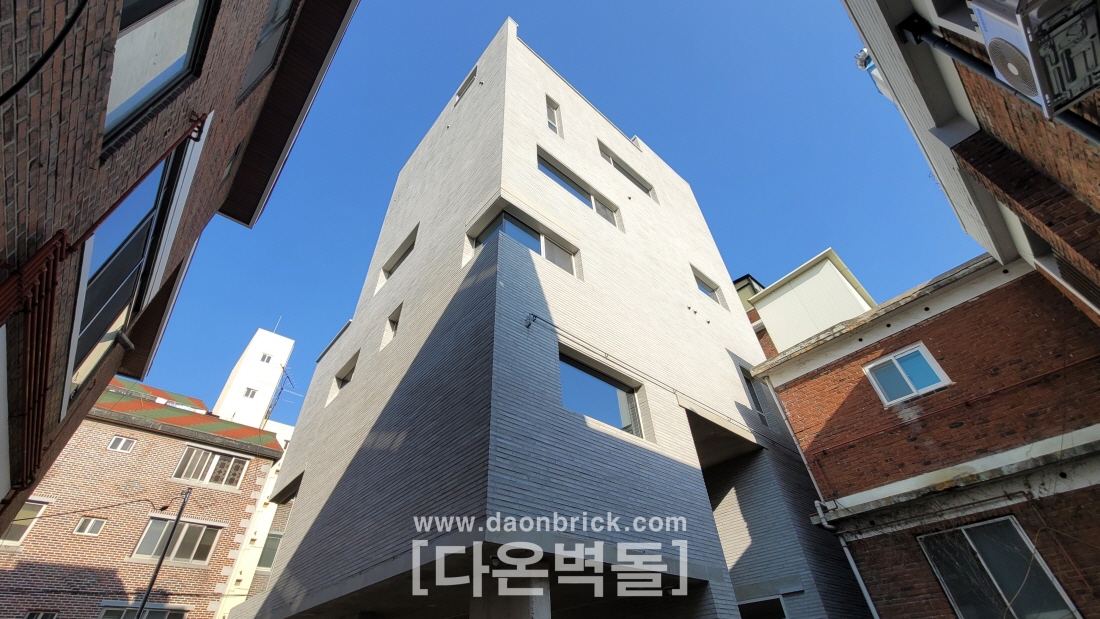 "테라조롱브릭 DHY-F시리즈" 근린생활시설 마감사례 F600 규격 : 600*72*40 F500 규격 : 500*72*40 F400 규격 : 400*72*40 세가지 규격으로 무패턴 조적시공된 이태원현장입니다.
